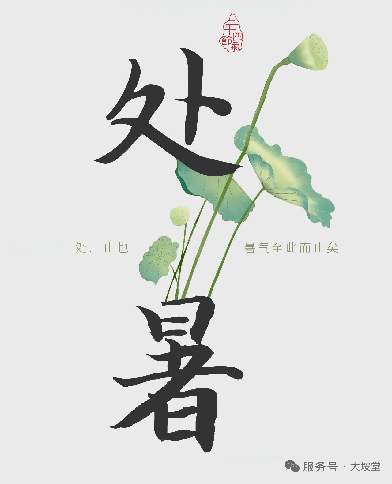 《月令七十二候集解》:“七月中。处,止也。暑气至此而止矣”。“处”有“终止、躲藏”之意,“处暑”即“暑气至此而止”,时至处暑,暑热渐退,阴气渐长,凉热交替。但我国部分地区仍可能有短期的炎热天气,俗称“秋老虎”。